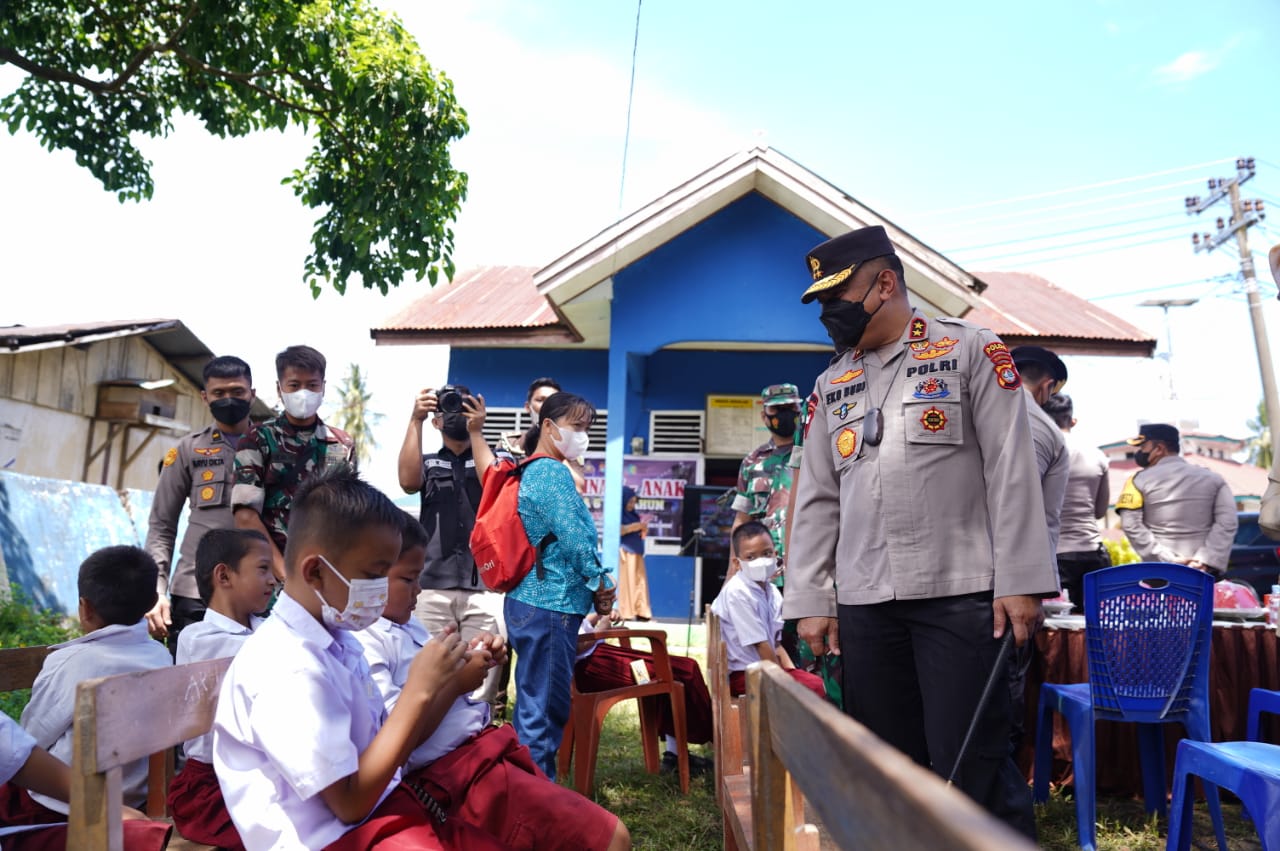 SULBARPEDIA.COM,- Mamuju, Kapolda Sulbar, Irjen Pol Eko Budi Sampurno bersama rombongan mendatangi SD Inpres Salulayang di desa bambu untuk melakukan pemberian Vaksinasi anak dan Vaksin booster, Selasa (08/02/22).